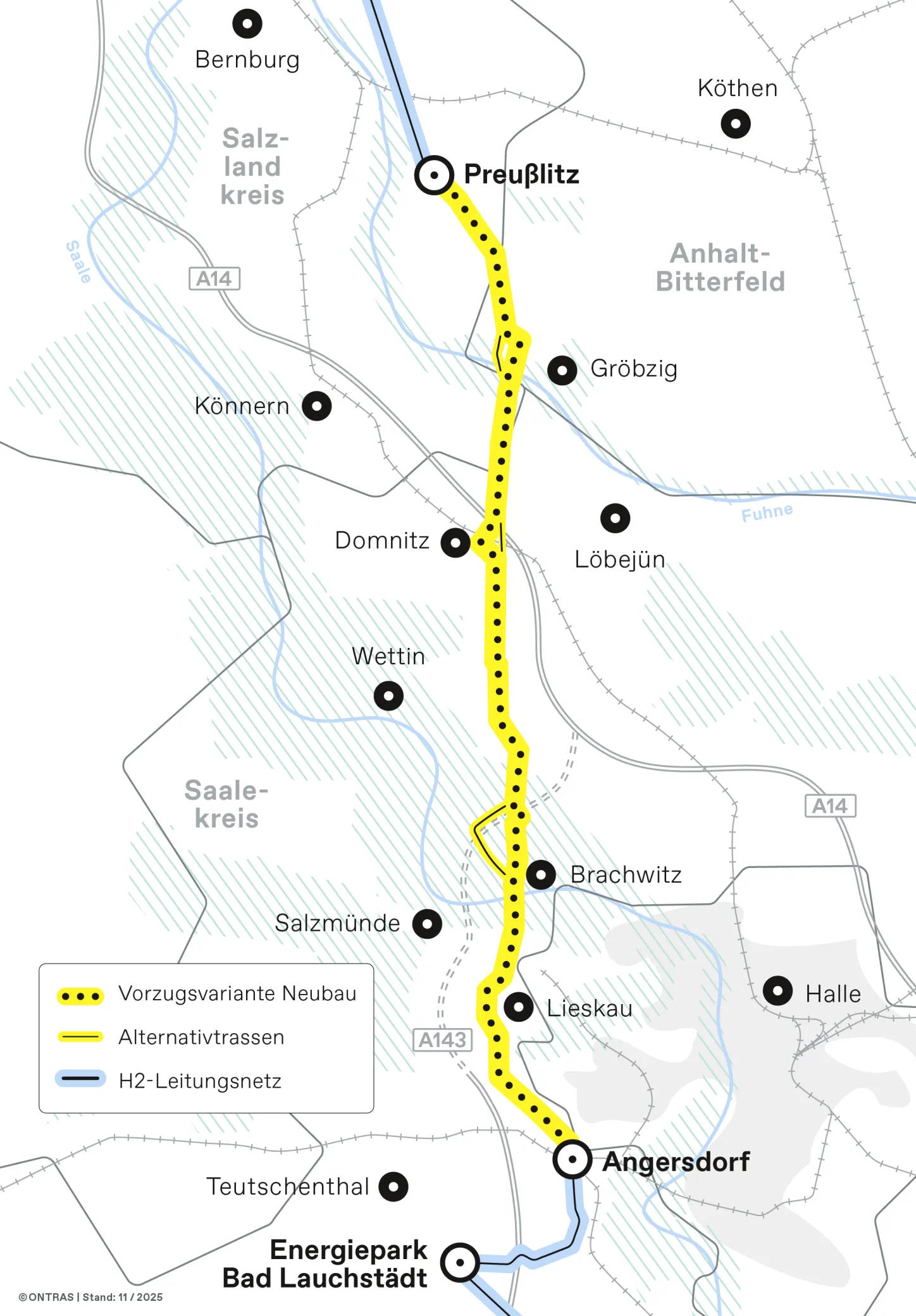 Geplanter Neubau der Wasserstoffleitung Angersdorf-Preußlitz