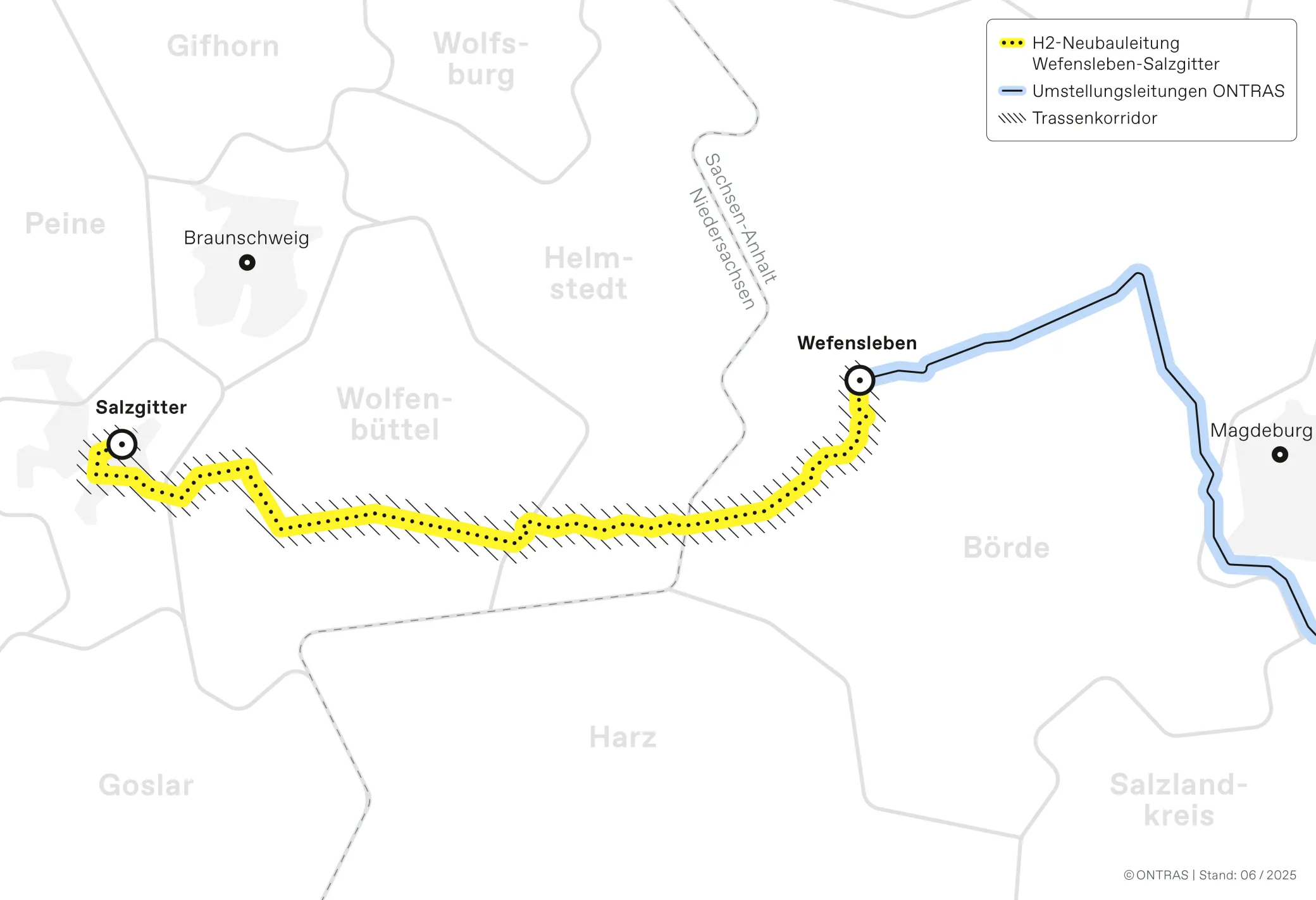 Als Bestandteil des ONTRAS H2-Startnetzes und im Rahmen des IPCEI GO! plant ONTRAS den Bau der ca. 71 Kilometer umfassenden Leitung von Wefensleben (Sachsen-Anhalt) nach Salzgitter (Niedersachsen).